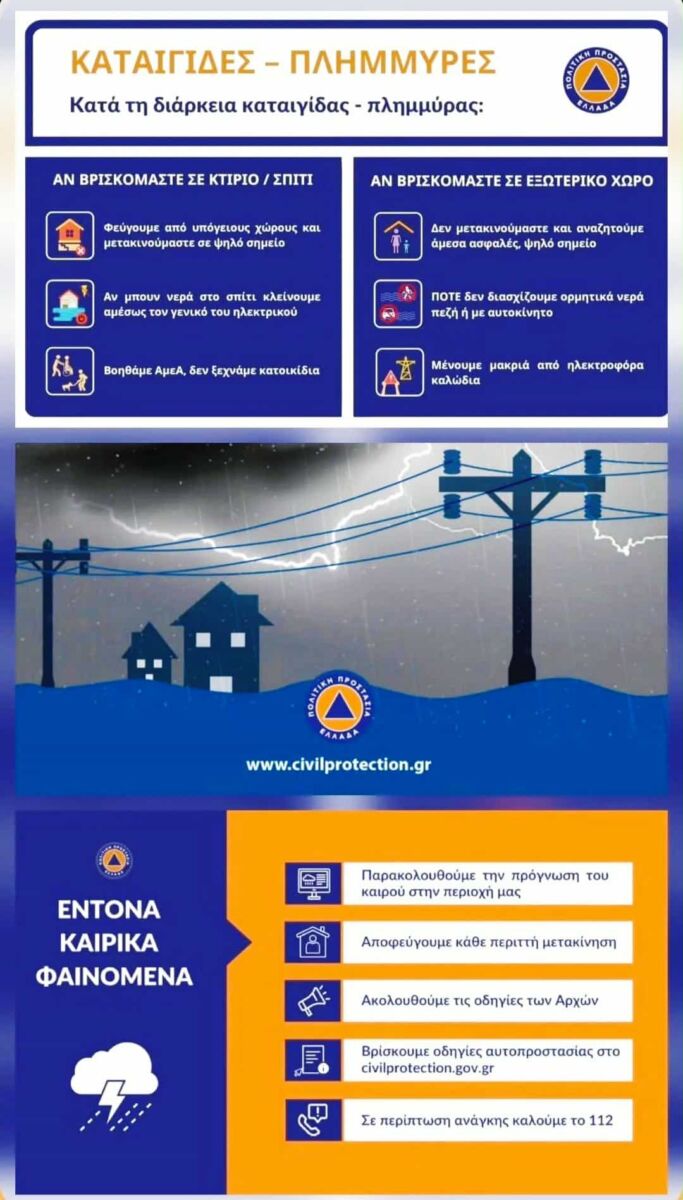 Η Πολιτική Προστασία Περιφέρειας Κρήτης ενημερώνει ότι, σύμφωνα το Α.Α. 7/03-12-2025/1230 B ΕΚΤΑΚΤΟ ΔΕΛΤΙΟ ΕΠΙΚΙΝΔΥΝΩΝ ΚΑΙΡΙΚΩΝ ΦΑΙΝΟΜΕΝΩΝ της ΕΜΥ/ΕΜΚ, προβλέπονται ισχυρές βροχές και καταιγίδες, που θα έχουν και μεγάλη διάρκεια. Τα ισχυρά φαινόμενα θα συνοδεύονται από τοπικές χαλαζοπτώσεις και κατά διαστήματα από ισχυρούς ανέμους και θα επηρεάσουν κυρίως τα νότια τμήματα της Κρήτης αύριο Πέμπτη 4 Δεκεμβρίου 2025 και όλη την Κρήτη την Παρασκευή 5 Δεκεμβρίου 2025.