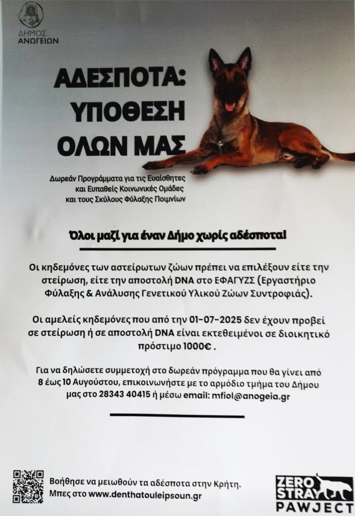 “Στην εκστρατεία του Δήμου Ανωγείων, η οποία ολοκληρώθηκε πριν από λίγο, χειριστήκαμε συνολικά 90 ζώα: 77 σκύλους και 13 γάτες.