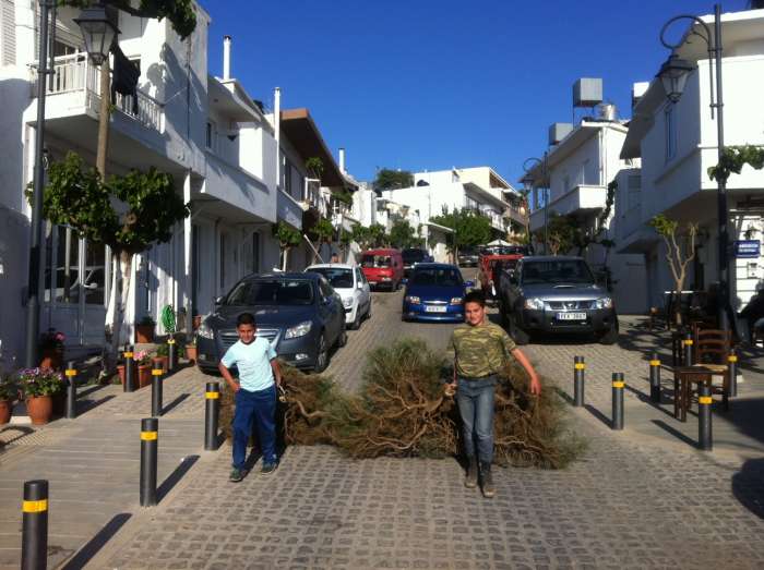 Οι μεγάλοι παρακολουθούν τα παιδιά διακριτικά από τα καφενεία. Με χαμόγελο καπνίζουν το τσιγάρο τους, πίνουν τον καφέ τους και παρακολουθούν τα συνθήματα των παιδιών όταν φτάνει ένα αυτοκίνητο γεμάτο με ξύλα.
