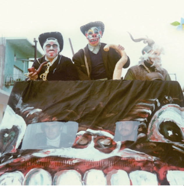 Και άρχιζε η διαδικασία για τσ’ αποκριές. Τσ’ αποκριές τότε εμαζεύγουντονε οικογενειακά, οι γέροι, τα παιδιά, οι συγγενείς, και εγί- νουντονε ένα τραπέζι οικογενειακό. O καθαείς επηγαινε τα φαγητά που είχε ψήσει. Κιανείς δεν έκανε μοναχός του αποκριές, εκτός να μην είχε άλλον άνθρωπο. Εφτιάχνανε και τότε τσι πίχες, χα λαζάνια, τα κρέατα, τα βραστά, τα κοκκινιστά και οπωσδήποτε τα οφχά και εκάνανε το τραπέζι ρόιδι και εκαθίζανε και τρώγανε και πίνανε κρασί και καμιά φορά, άμα βγαίνανε στο κέφι, εκάνανε και τσι μασκάρες και εγυρίζανε το χωριό και μπαίνανε στα καφενεία και στα σπίτια. Τοτεσάς δεν εξεμασκαρώνανε τσι μασκαράδες.