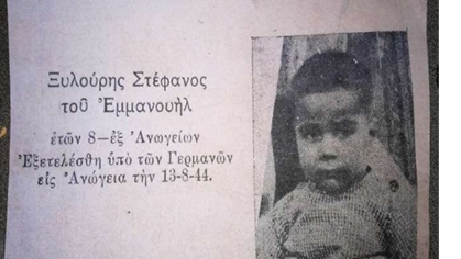 Tο πρώτο και νεότερο θύμα της ναζιστικής θηριωδίας στο Ολοκαύτωμα των Ανωγείων, ο οχτάχρονος Στεφανής Ξυλούρης – 13 Αυγούστου 1944