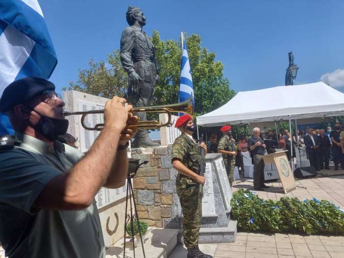 Ακολούθησε κατάθεση στεφάνων και η ανάκρουση του Εθνικού Ύμνου.
