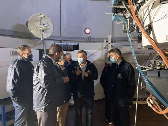 Το Αστεροσκοπείο Σκίνακα και το Δήμο Ανωγείων επισκέφτηκε το απόγευμα της Παρασκευής 23 Ιουλίου 2021 ο Υφυπουργός Έρευνας και Τεχνολογίας κ. Χρίστος Δήμας. Τον κ. Δήμα συνόδευαν ο Υφυπουργός Υποδομών και Μεταφορών κ. Γιάννης Κεφαλογιάννη, ο βουλευτής Ηρακλείου κ. Μάξιμος Σενετάκης καθώς και ο Πρόεδρος του Ιδρύματος Τεχνολογίας και Έρευνας καθηγητής Νεκτάριος Ταβερναράκης. Οι επισκέπτες είχαν την ευκαιρία να ξεναγηθούν στο τηλεσκόπιο 1,3μ του Αστεροσκοπείου και να ενημερωθούν από τον Διευθυντή του Αστεροσκοπείου Σκίνακα καθηγητή Βασίλη Χαρμανδάρη για το ερευνητικό και εκπαιδευτικό έργο το οποίο επιτελείται από τους αστρονόμους του ΙΤΕ και του Πανεπιστημίου Κρήτης, θαυμάζοντας την υπέροχη θέα της Κρήτης από την κορυφή του βουνού.