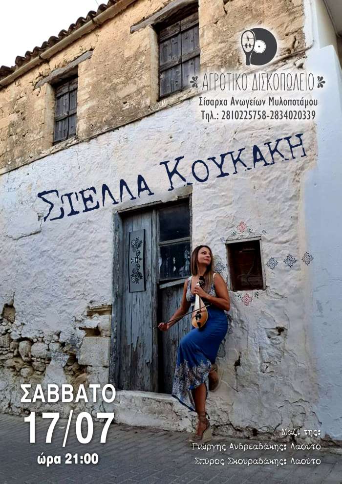 -Σάββατο 17 Ιουλίου, ώρα 21:00 – Η Στέλλα Κουκάκη με τους Γιώργη Ανδρεαδάκη και Σπύρο Σκουραδάκη