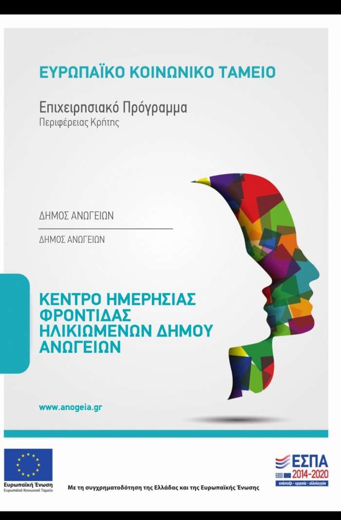 Ο Δήμος Ανωγείων, μετά την απόφαση της Ένταξης της Πράξης «Κέντρο Ημερήσιας Φροντίδας Ηλικιωμένων του Δήμου Ανωγείων» με Κωδικό ΟΠΣ 5002417 στο Επιχειρησιακό Πρόγραμμα «Κρήτη 2014-2020»,