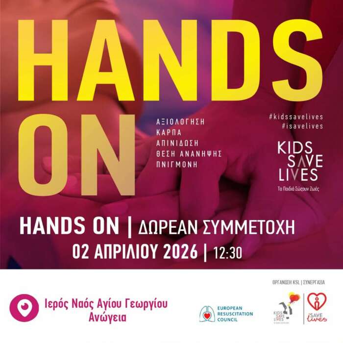 Την Πέμπτη 2 Απριλίου στις 12:30, στον Ιερό Ναό Αγίου Γεωργίου Ανωγείων, θα πραγματοποιηθεί από τον Ανθρωπιστικό Οργανισμό Αναζωογόνησης KIDS SAVE LIVES – Τα Παιδιά Σώζουν Ζωές δωρεάν εκπαίδευση “iSAVE LIVES HANDS ON” : ΚΑΡΠΑ, Χρήση AED, Αντιμετώπιση αναίσθητου θύματος, Αντιμετώπιση Πνιγμονης από ξένο σώμα