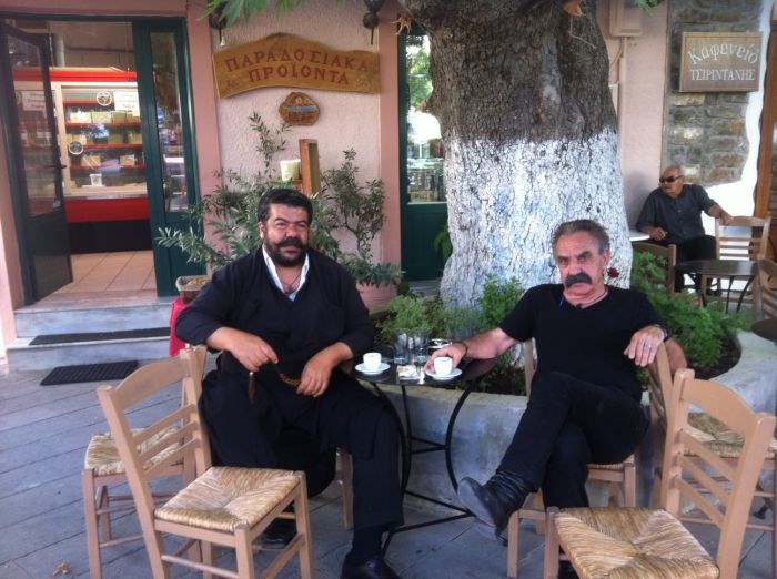 Βρισκόμαστε ήδη στην καρδιά του καλοκαιριού και δεν υπάρχει κάτι καλύτερο από ένα χαλαρό καφέ μαζί με παρέα σε κάποια από τις πλατείες του χωριού. Μια καλή παρέα βρέθηκε χθες και κάτω από τον ίσκιο του πλατάνου στο Μειντάνι. Ο π.Ανδρέας και ο Αριστείδης Χαιρέτης συζητούσαν χαμογελαστοί και απολάμβαναν την δροσιά του πλατάνου. Ο πάντα ετοιμόλογος Γιαλάφτης ”σκάρωσε” μια αυτοσχέδια μαντινάδα πάντα κατάλληλη για την περίσταση!