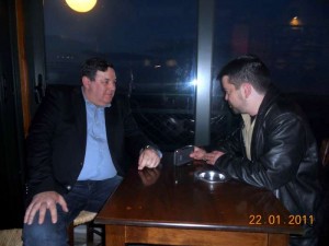 ”Οι ρίζες μου είναι από τα Σφακιά, Δερμιτζάκηδες είμαστε” σημείωσε, μιλώντας για την καταγωγή του και πρόσθεσε: ”Τον παππού μου τον πήραν οι Τούρκοι στα τάγματα εργασίας και δεν τον ξαναείδαμε από τότε. Έκτοτε χάθηκε και η γενιά. Χτες στο Ρέθυμνο αισθάνθηκα σαν να ξαναγεννήθηκα, να ξαναβαπτίστηκα. Έτσι φυσικό επακόλουθο ήταν το επόμενο βήμα μου, να με οδηγήσει εδώ στον Ψηλορείτη και τ΄ Ανώγεια.”