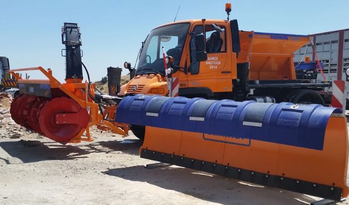 Παρελήφθη και ο υπόλοιπος εξοπλισμός του Πολυμηχανήματος όπου περιλαμβάνει : Αλατοδιανομέα, φρέζα εκχιονισμού και μαχαίρι εκχιονισμού.