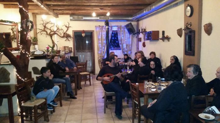 Ο Βασίλης πήρε και πάλι το μαντολίνο του παίζοντας διάφορους σκοπούς με τις γυναίκες να συμμετέχουν ενεργά με μαντινάδες και τραγούδια.