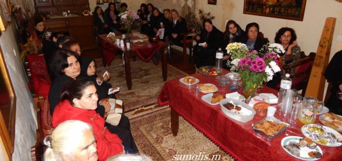 Στη συνέχεια οι μοναχοί προσέφεραν κέρασμα στους καλεσμένους τους, με φαγητό και αναψυκτικά που ήρθαν να συμπληρώσουν και τα εδέσματα που κρατούσε μαζί της η κάθε γυναίκα.
