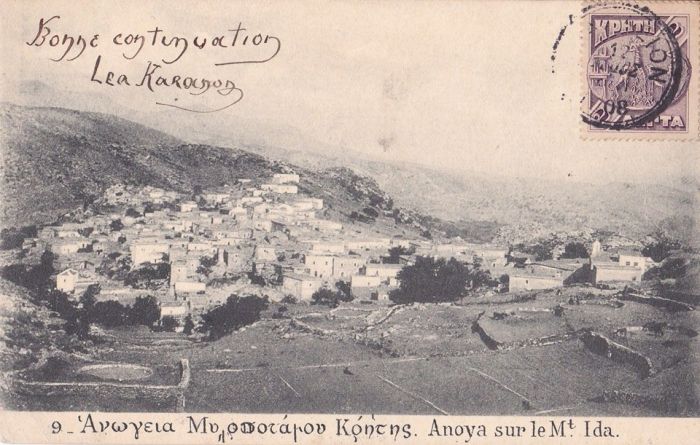 Τα Ανώγεια όπως ήταν ένα αιώνα πριν παρουσιάζει η παραπάνω φωτογραφία, σε μια έκδοση καρτ-ποστάλ που δημοσιεύτηκε στο facebook στην σελίδα ”Κρήτη-Ιστορία-Λαογραφία”. Η φωτογραφία χρονολογείται την περίοδο από το 1900 έως το 1910 και είναι από τις εκδόσεις Ζουρίδης.
