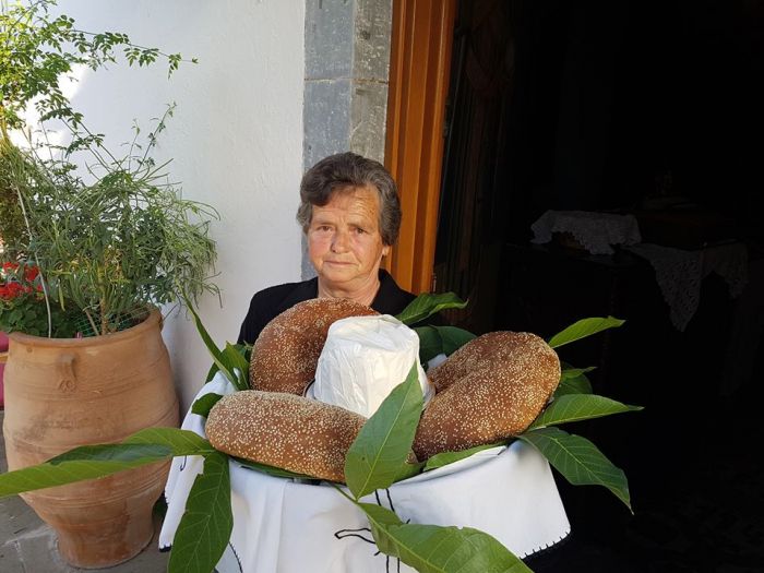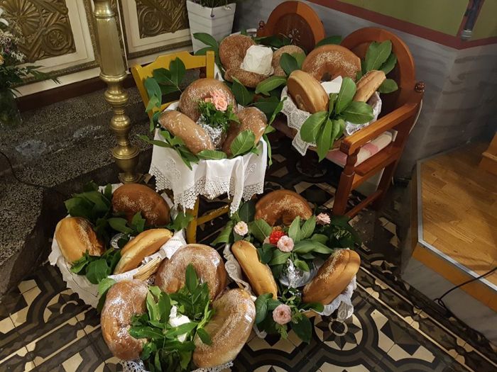 Οι γυναίκες τιμούν τους νεκρούς στολίζοντας ένα πανέρι με τρία γλυκά κουλούρια κι ένα ανθότυρο η τυρί στη μέση, με καρυδόφυλλα… και τριαντάφυλλα και τα πηγαίνουν στην εκκλησία προσφορά για αυτούς που έχουν φύγει. Το τυρί βρίσκεται εκεί καθώς τα Ανώγεια είναι Κτηνοτροφικό χωριό ενώ τα φύλλα της καρυδιάς συμβολίζουν την πικρή και στυφή γεύση που έχουν την ημέρα αυτή οι Ψυχές, τη μέρα που οι νεκροί επιστρέφουν στον Άδη. Τα τρία κουλούρια συμβολίζουν την Αγία Τριάδα.Μάλιστα στη συνέχεια επισκέπτονται οι γυναίκες το νεκροταφείο στολίζουν με φύλλα καρυδιάς τους τάφους και τους πλύνουν με αυτά .Μετά την λειτουργία οι προσφορές κόβονται και μοιράζονται στους πιστούς στην μνήμη των νεκρών.