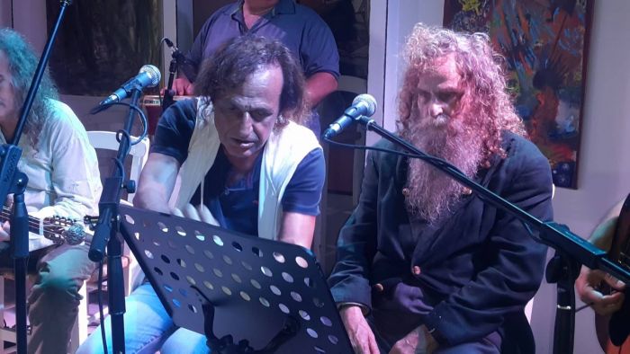 Η αίθουσα στο Πολύκεντρο νεολαίας “Ανδρόγεω” στο Ηράκλειο ήταν κατάμεστη από κόσμο, στην παρουσίαση του δίσκου “Χαραυγή” των Μιχάλη και Αντώνη Φραγκιαδάκη, με την ξεχωριστή παρουσία του Ψαραντώνη και του Βασίλη Παπακωνσταντίνου. Οι τέσσερις καλλιτέχνες αποθεώθηκαν κατά τη διάρκεια της πιο ξεχωριστής στιγμής της βραδιάς, όταν όλοι μαζί στη σκηνή ερμήνευσαν με τον ιδιαίτερο τρόπο τους ο καθένας την “Χαραυγή’, ένα από τα πιο γνωστά και διαχρονικά τραγούδια της Κρητικής Μουσικής. Στο τέλος του τραγουδιού, ο Βασίλης Παπακωνσταντίνου, ο μεγάλος ρόκερ της Ελληνικής μουσικής σκηνής, μίλησε στο κοινό, με τον μεγάλο Ψαραντώνη να ακουμπάει το κεφάλι του στον ώμο του Βασίλη, δείγμα κι αυτό της ξεχωριστής σχέσης των δυο μεγάλων καλλιτεχνών. Ο Βασίλης ανέφερε χαρακτηριστικά τα εξής:
