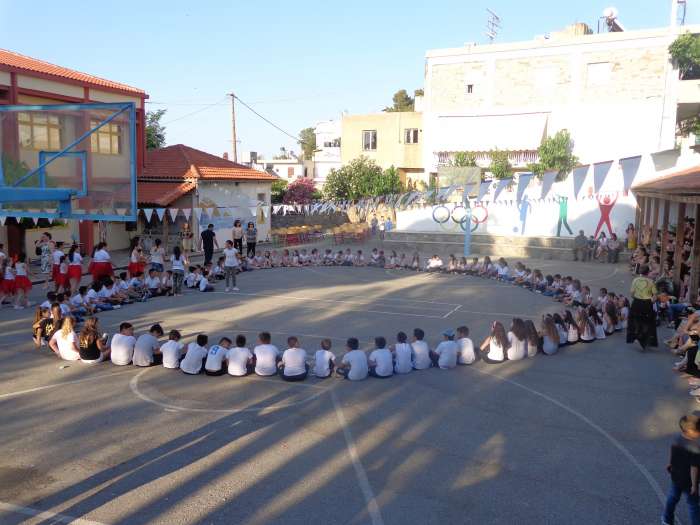 Για απόψε η γιορτή μας περιλαμβάνει καλλιτεχνικό και αθλητικό μέρος. Στο πρώτο μέρος θα διασκεδάσετε με τις χορευτικές ικανότητες των μαθητών μας και στο δεύτερο με αθλητικά παιχνίδια και δραστηριότητες. Στην πραγματοποίηση της γιορτής έβαλαν το λιθαράκι τους όλοι οι συνάδελφοι, στο χορευτικό μέρος ιδιαιτέρως η δασκάλα Αγγλικής κ. Κανέλλου Καρολίνα, η δασκάλα του Τ.Ε κ. Διχάλα Ελένη και φυσικά η γυμνάστρια του Σχολείου κ. Κατσάνου Αγάθη, η οποία επιμελήθηκε και το αθλητικό μέρος της γιορτής.