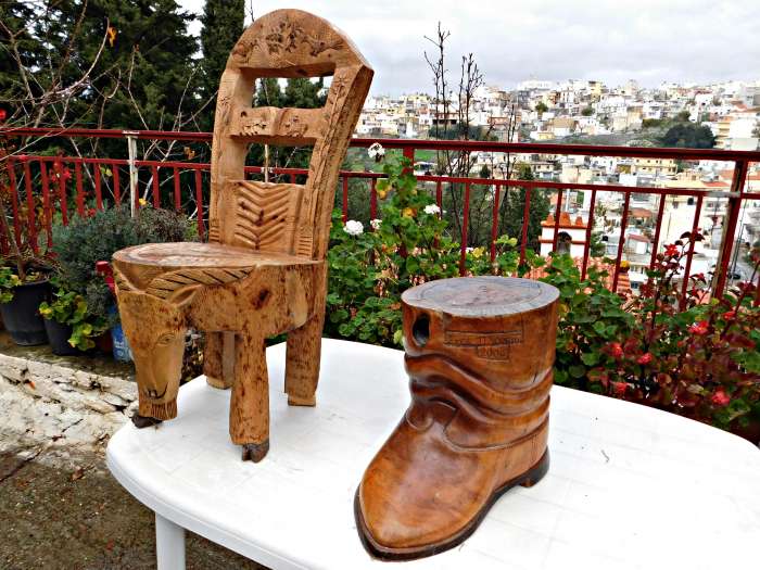 Αμοναχός μου. Εγώ δουλεύω τώρα κι άμα δω κάτι το κάνω, ξαφνικά μου έρχεται. Να αυτό δες για παράδειγμα (σ.σ μας δείχνει έναν μικρό καναπέ που έφτιαξε με το ξύλο), άρχισα και δεν ήξερα που να τελειώσω. Σιγά σιγά το ένα φέρνει το άλλο, από δω από εκεί, όση ώρα δουλεύω το μυαλό σκέφτεται και κάνει μοναχό του την επόμενη κίνηση.