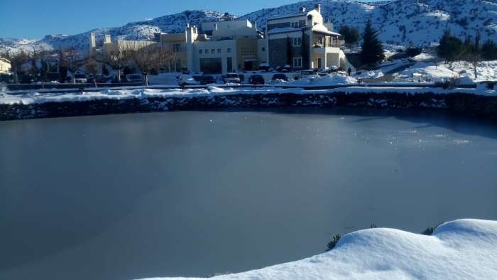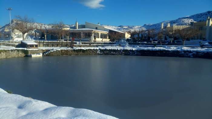 Το δυνατό στρώμα του πάγου μάλιστα δεν υποχωρούσε ούτε με δυνατές…ρίψεις χιονόμπαλων που έκαναν χάριν αστεϊσμού οι παρευρισκόμενοι εκεί, με το χιόνι να μην βουλιάζει αλλά να απλώνεται σαν ζάχαρη πάνω στον πάγο! Δείτε τις εικόνες της παγωμένης λίμνης που τράβηξε ο συνεργάτης μας Μανόλης Σαμόλης το απόγευμα της Τετάρτης!