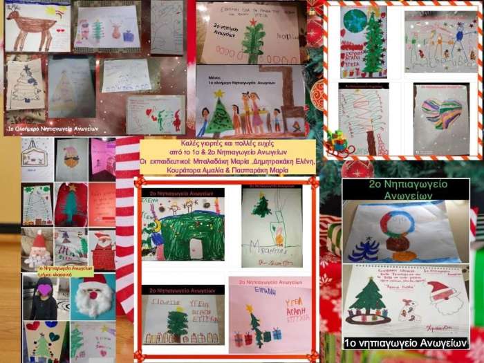Ένα πολύ όμορφο κολάζ με ζωγραφιές των μικρών παιδιών του πρώτου και δεύτερου Νηπιαγωγείου Ανωγείων, ήταν η ομορφότερη ευχετήρια κάρτα που λάβαμε μέχρι σήμερα, παραμονή των Χριστουγέννων, στην ΑΝΩΓΗ. Η αθώα ματιά των παιδιών, οι ζωγραφιές και οι ευχές τους προς όλα τα παιδιά του κόσμου, για ένα ευτυχισμένο νέο έτος, μας συγκινούν, ιδιαίτερα φέτος που δεν θα έχουμε τη χαρά να τους ανοίξουμε την πόρτα για να μας πουν τα κάλαντα των Χριστουγέννων, της Πρωτοχρονιάς και των Φώτων.