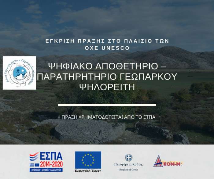 Εγκρίθηκε πρόταση που υπέβαλλε το ΑΚΟΜΜ-ΨΗΛΟΡΕΙΤΗΣ ΑΝΑΠΤΥΞΙΑΚΗ ΑΕ ΟΤΑ στο πλαίσιο της Πρόσκλησης «Δράσεις Στρατηγικής ΟΧΕ περιοχών φυσικού κάλλους UNESCO» του Επιχειρησιακού Προγράμματος «Κρήτη 2014-2020»