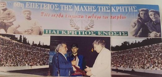 Ο κρητικός Μίκης αποθεώνεται από 80.000 Κρήτες σε μία μεγαλειώδη εκδήλωση στο Καλλιμάρμαρο. Ήταν 11 Ιουνίου του 2001 όταν για πρώτη φορά στην ιστορία κατακλύστηκε ασφυκτικά το μεγαλύτερο στάδιο της Αθήνας σε πολιτιστική εκδήλωση με τον Πρόεδρο της Παγκρητίου Ενώσεως, κ. Κώστα Ξυλούρη, να ανακηρύσσει τον Μίκη Θεοδωράκη επίτιμο Πρόεδρο της με ομόφωνη απόφαση του Δ. Σ.