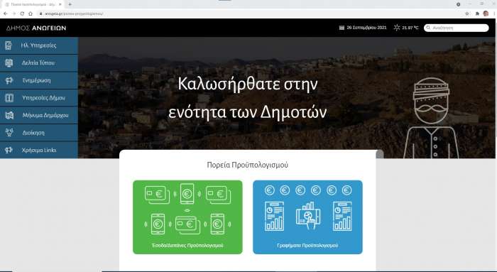 Στην εποχή της ηλεκτρονικής πληροφορίας και της ηλεκτρονικής διακυβέρνησης ο Δήμος Ανωγείων, εκπληρώνοντας το στόχο που έχει θέσει για προσαρμογή των υπηρεσιών του στα σύγχρονα δεδομένα, δίνοντας «διαδικτυακό βήμα» στους συμπολίτες μας για να παρακολουθήσουν, να καταθέσουν τις ιδέες, τις προτάσεις αλλά και την κριτική τους, προχώρησε στον εκσυγχρονισμό της ιστοσελίδας του (www.anogeia.gr) και στην συμπερίληψη σε αυτή ηλεκτρονικών υπηρεσιών όπως οι ηλεκτρονικές πληρωμές, τα αιτήματα πολιτών, και η πορεία προϋπολογισμού του Δήμου (https://anogeia.gr/dimotis/).