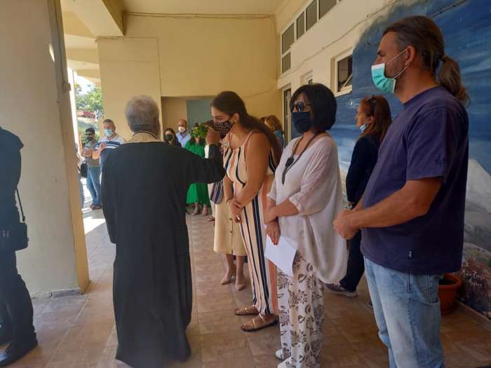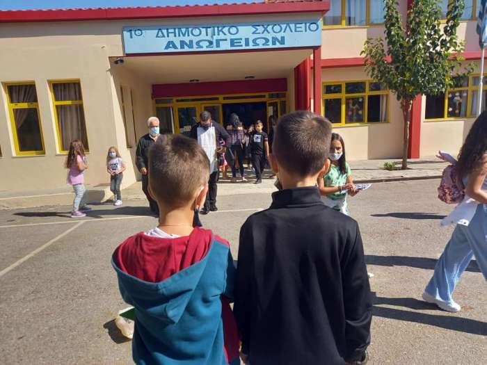 Τελέστηκε ο αγιασμός στα σχολεία μας από τον ιερωμένο πάτερ Γεώργιο Ανδρεαδάκη, παρουσία της δημοτικής αρχής, εκπαιδευτικών και γονέων.