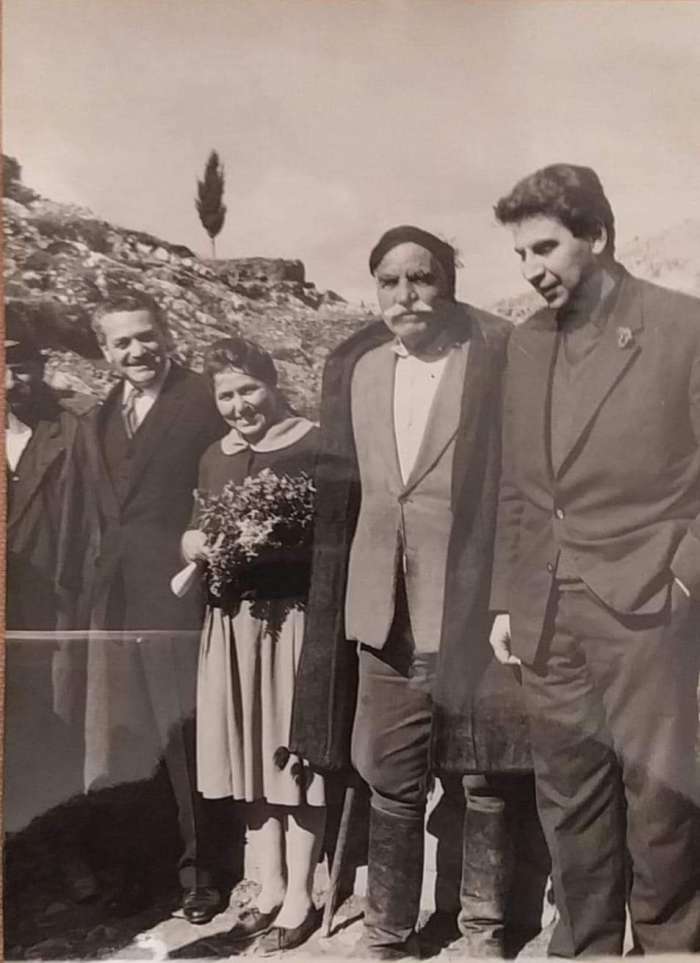 Ο Μίκης Θεοδωράκης με τον Μερτζάνη Σταυρακάκη, την Αγάπη Χαιρέτη και τον Μανόλη Γλέζο στα Ανώγεια το 1964. Τη φωτογραφία ανακάλυψε πέρσι η Katerina Fouraki-Kontokalou , μάλλον στο αρχείο του Μανόλη Γλέζου. (Πηγή: Facebook, Zαχαρένια Σκουλά)