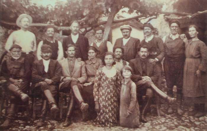 Ανωγειανή παρέα, πριν την έναρξη του Β΄ Παγκοσμίου Πολέμου. Πρώτος δεξιά καθήμενος, ο Αρχηγός Ανωγείων και Άνω Μυλοποτάμου Γιάννης Δραμουντάνης – Στεφανογιάννης