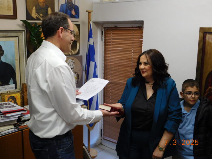 Τη νέα υπάλληλο στο Τμήμα Κοινωνικής Προστασίας Παιδείας και Πολιτισμού κ. Όλγα Σαλούστρου όρκισε την Τετάρτη 5 Μαρτίου ο Δήμαρχος Ανωγείων Σωκράτης Κεφαλογιάννης παρουσία στελεχών του Δήμου.