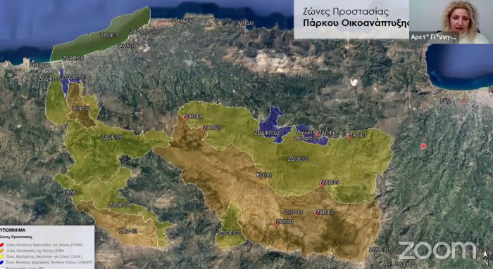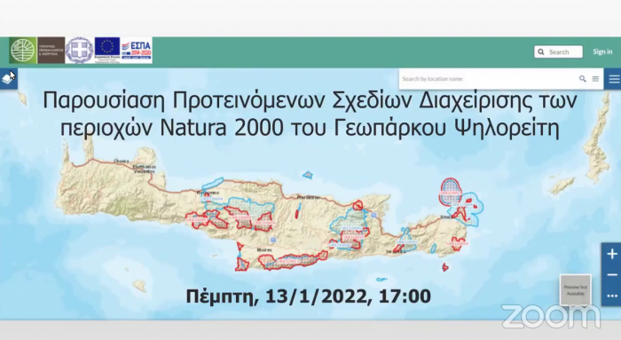Την περασμένη εβδομάδα πραγματοποιήθηκε η συνάντηση που οργάνωσε το Γεωπάρκο του Ψηλορείτη σε συνεργασία σε την ΟΙΚΟΜ ΕΠΕ σχετικά με τις Προτάσεις Διαχείρισης των Περιοχών Natura 2000 στην περιοχή του Ψηλορείτη. Η συνάντηση διοργανώθηκε διαδικτυακά με σκοπό οι πολίτες και οι φορείς της περιοχής του γεωπάρκου και όχι μονο, να ενημερωθούν σχετικά με τα αποτελέσματα της Ειδικής Περιβαλλοντικής Μελέτης για τις περιοχές Natura ανατολικής και κεντρικής Κρήτης που εκπόνησε η ΟΙΚΟΜ με τους συνεργάτες της, τις προτεινόμενες ζώνες προστασίας, τις επιτρεπόμενες δράσεις που προβλέπονται για κάθε μια από αυτές, καθώς και το σχέδιο διαχείρισής τους. Οι μελετητές παρουσίασαν τη φιλοσοφία και τους στόχους του Σχεδίου Διαχείρισης στην Περιοχή Οικοανάπτυξης του Ψηλορείτη και εστίασαν σε συγκεκριμένα ζητήματα που αφορούν στην περιοχή όπως η προστασία σπάνιων και μοναδικών ειδών και οικοσυστημάτων, η ανάπτυξη οικοτουριστικών δράσεων, η προσαρμογή της κτηνοτροφίας στις συγκεκριμένες ζώνες καθώς και η σχέση των περιοχών με τα έργα εγκατάστασης ΑΠΕ.