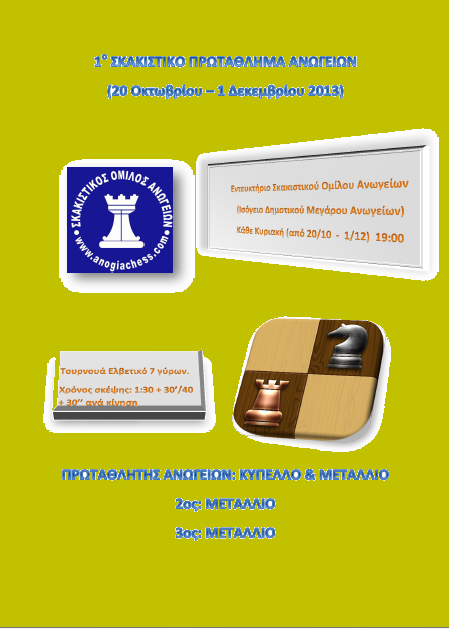 «1ο ΣΚΑΚΙΣΤΙΚΟ ΠΡΩΤΑΘΛΗΜΑ ΑΝΩΓΕΙΩΝ 2013»