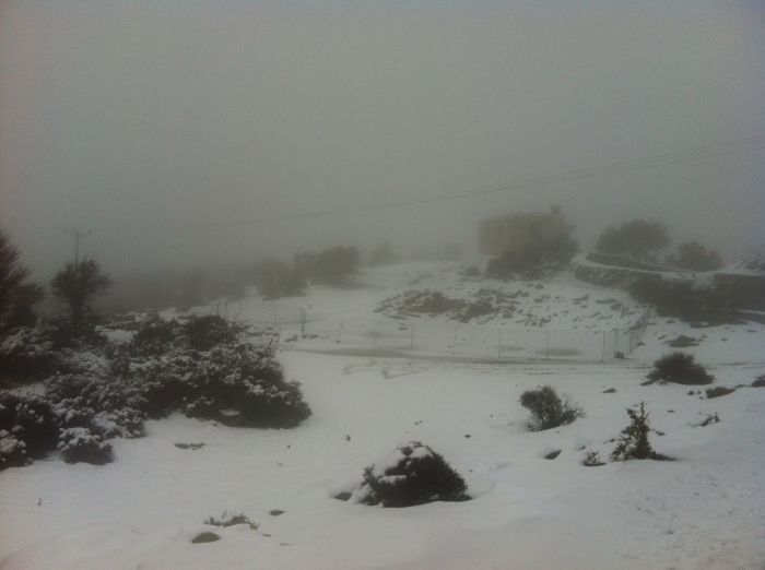 Στο βουνό φυσικά με πολύ χαμηλότερες θερμοκρασίες είχαμε δυνατή χιονόπτωση η οποία εξακολουθεί και αυτή την ώρα αλλά με λιγότερη ένταση.