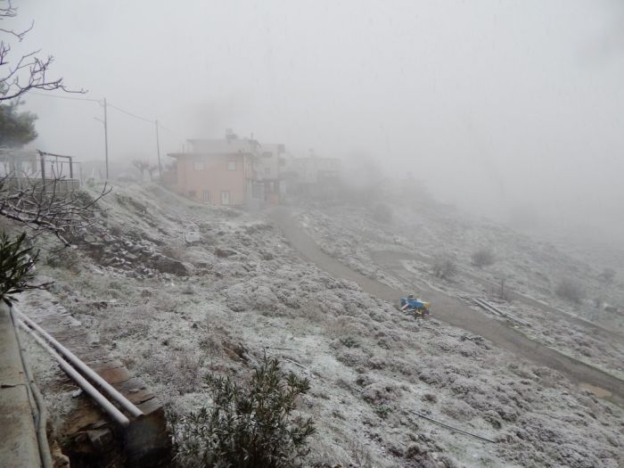 Πυκνό χιόνι άρχισε να πέφτει από νωρίς το απόγευμα στ΄ Ανώγεια, με το χωριό να ντύνεται στα λευκά. Χιονισμένα Θεοφάνεια θα γιορτάσουν αύριο το χωριό αφού αυτή την ώρα (6μ.μ.) η