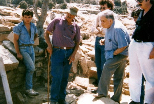 Ε.Σ.: Πάντοτε με τους φοιτητές κάναμε ένα «survey», μια επιφανειακή έρευνα, για να μελετήσουμε την τοπογραφία της περιοχής. Σε μια απ’ αυτές τις περιοδείες που κάναμε βρήκα ένα μικρό τμήμα «ιερού κέρατος», το οποίο σημαίνει ότι κάτι σημαντικό υπήρχε εκεί. Το είπα στον Γιάννη και σπεύσαμε την επομένη. Ήταν Μάρτης που δεν είχαμε ανασκαφή. Έτσι εντοπίστηκε το ιερό της Ανθρωποθυσίας. Το καλοκαίρι άρχισε μια ανασκαφή με τα γνωστά αποτελέσματα.