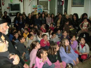 Ακόμα τους είπαν χριστουγεννιάτικα παραμύθια και τα παραδοσιακά Ανωγειανά κάλαντα. Ακολούθησε η θεαματική είσοδος του Άγιου Βασίλη που μοίρασε δώρα στα παιδιά που είχαν φτιαχτεί από τις ηλικιωμένες της ομάδας εργοθεραπείας του ΚΑΠΗ .Τα παιδιά απ τη μεριά τους είχαν ετοιμάσει ευχετήριες κάρτες που μοίρασαν στους ηλικιωμένους και τραγούδησαν διάφορα χριστουγεννιάτικα τραγούδια.