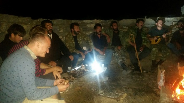 Επίσης, επισκέφθηκαν ένα μιτάτο στον Ψηλορείτη στην περιοχή “Χαμένι”, όπου τους περίμενε μία παρέα κτηνοτρόφων και πέρασαν μία υπέροχη βραδιά τρώγοντας οφτό, πίνοντας κρασί και ακούγοντας τοπικές μαντινάδες συνοδεία μαντολίνου. Ο Simon Reeve καθώς και οι συνεργάτες του, τεχνικοί και δημοσιογράφοι, δήλωσαν κατενθουσιασμένοι με την εμπειρία και την Κρητική φιλοξενία.Το μαντολίνο και οι μαντινάδες που αντηχούσαν στο ιερό βουνό του Ψηλορείτη, πλάι στην φωτιά που ήταν αναμμένη για να ψηθεί το παραδοσιακό οφτό, δημιούργησαν ένα πρωτόγνωρο και μαγικό θέαμα για τους ξένους τεχνικούς και δημοσιογράφους.