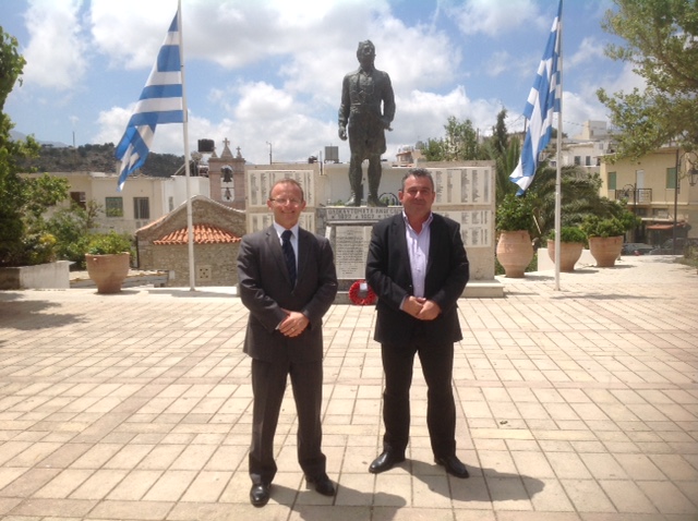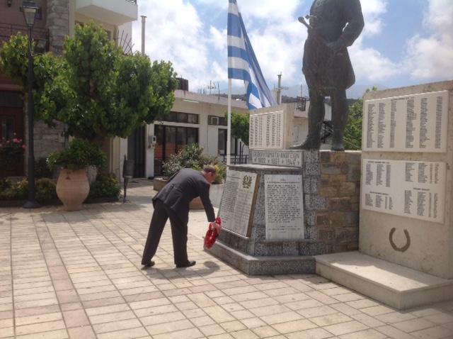 Στα Ανώγεια βρέθηκε χθες Τετάρτη 18 Μαΐου ο επικεφαλής της Βρετανικής Πρεσβείας της Αθήνας κ.Τζών Κίτμερ για να αποτίσει φόρο τιμής στους Ανωγειανούς αγωνιστές κατά των Ναζί κατά τον Δεύτερο Παγκόσμιο Πόλεμο. Ο Πρέσβης της Αγγλίας μετά από δική του πρωτοβουλία έφτασε στα Ανώγεια και κατέθεσε στεφάνι στο ηρώο του Ανωγειανού αγωνιστή στην πλατεία Αρμί, ενώ αναμένεται να παρευρεθεί και στα Χανιά για τις εκδηλώσεις της επετείου της Μάχης της Κρήτης.