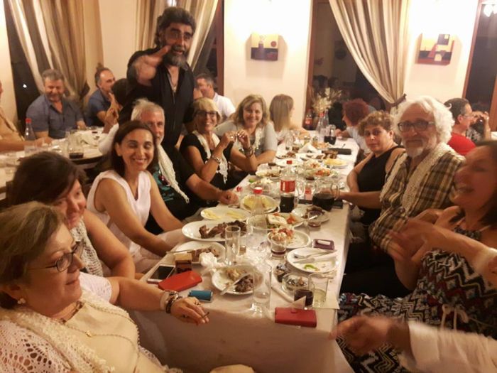 Η ημέρα τους γεμάτη, με συνάντηση στον χώρο του σχολείου, συζητήσεις, βόλτες στα Ανώγεια που κατέληξαν σε ένα μεγάλο τραπέζι στην παραδοσιακή ταβέρνα του “Μούγερη”, όπου το τραπέζι ήταν πλούσιο σε εδέσματα και το κέφι έφτασε στα ύψη, με μαντινάδες υπό τη συνοδεία του μαντολίνου. “Παιδιά” από τα Ανώγεια, τα Λιβάδια, την Αξό και όλα τα γειτονικά χωριά έδωσαν το παρόν στο κάλεσμα των παιδικών τους χρόνων και απόλαυσαν μια βραδιά γεμάτη αναμνήσεις. Τους ευχόμαστε να είναι πάντα γεροί και δυνατοί και να συναντηθούν ξανά σύντομα ώστε να ζήσουν ξανά παρόμοιες στιγμές.