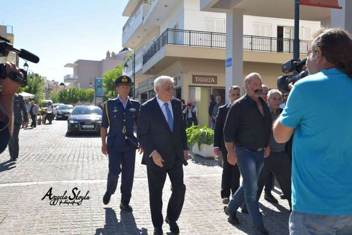 Ο Πρόεδρος της Δημοκρατίας Προκόπης Παυλόπουλος έφτασε στα Ανώγεια στις 10.30 π.μ για να παραστεί στις εκδηλώσεις μνήμης για την 73η επέτειο του Ολοκαυτώματος των Ανωγείων. Ήταν η πρώτη φορά που Πρόεδρος της Δημοκρατίας τιμά με την παρουσία του τα Ανώγεια και το τρίτο Ολοκαύτωμα της μακραίωνης ιστορίας τους. Τον Πρόεδρο υποδέχτηκε ο δήμαρχος Ανωγείων Μανόλης Καλλέργης ενώ στρατιωτικά αγήματα απέδιδαν τιμές, μέχρι να φτάσει στην εκκλησία του Αγίου Ιωάννου στο Αρμί για να παραστεί στην επίσημη δοξολογία στην οποία χοροστάτησαν ο Σεβασμιότατος Αρχιεπίσκοπος Κρήτης κ.κ Ειρηναίος και ο Σεβασμιότατος Μητροπολίτης Ρεθύμνου κ.κ Ευγένιος, οι οποίοι και τέλεσαν και το μνημόσυνο αργότερα στην πλατεία Αρμί μαζί με τους ιερωμένους των Ανωγείων για τους πεσόντες του Ολοκαυτώματος και της περιόδου της Γερμανικής Κατοχής. Η πλατεία μπροστά στο άγαλμα του Ανωγειανού αγωνιστή ήταν κατάμεστη από κόσμο, ενώ πέραν της παρουσίας του αξιότιμου Προέδρου της Δημοκρατίας, στα Ανώγεια βρέθηκαν μεταξύ άλλων ο Ευρωβουλευτής της Ν.Δ Μανόλης Κεφαλογιάννης, η βουλευτής της Ν.Δ Όλγα Κεφαλογιάννη, ο Υπουργός Περιβάλλοντος Γιώργος Σταθάκης, ο βουλευτής της Ν.Δ Γιάννης Κεφαλογιάννης, ο Ευρωβουλευτής Νότης Μαριάς,ο αναπληρωτής Υπουργός Υγείας Παύλος Πολάκης, ο Περιφερειάρχης Κρήτης Σταύρος Αρναουτάκης, ο Δήμαρχος Μυλοποτάμου Δημήτρης Κόκκινος, ο Αντιδήμαρχος Ηρακλείου Γιάννης Αναστασάκης, ο Αντιπεριφερειάρχης τεχνικών έργων και π.δήμαρχος Ανωγείων Νίκος Ξυλούρης και οι πρώην δήμαρχοι Ανωγείων Σωκράτης Κεφαλογιάννης και Γεώργιος Σμπώκος.