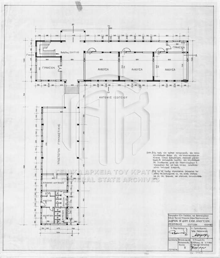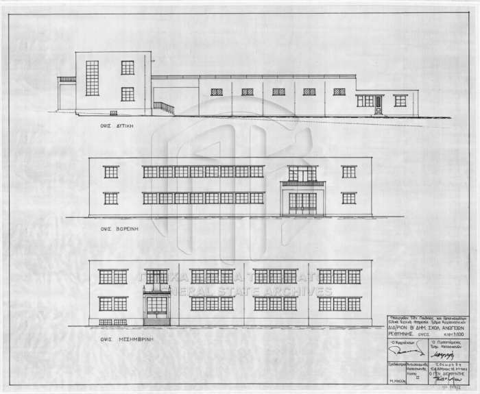 Σύμφωνα με την έρευνα του Σωκράτη Κεφαλογιάννη, αρχιτέκτονας για το Γυμνάσιο 1951 – 1953 ήταν ο Πέτρος Νιαγάσας, ενώ για το “Β’ Δημοτικόν Σχολείον Ανωγείων Ρεθύμνης” 1963 αρχιτέκτονας ήταν ο Γ. Σταυρίδης.