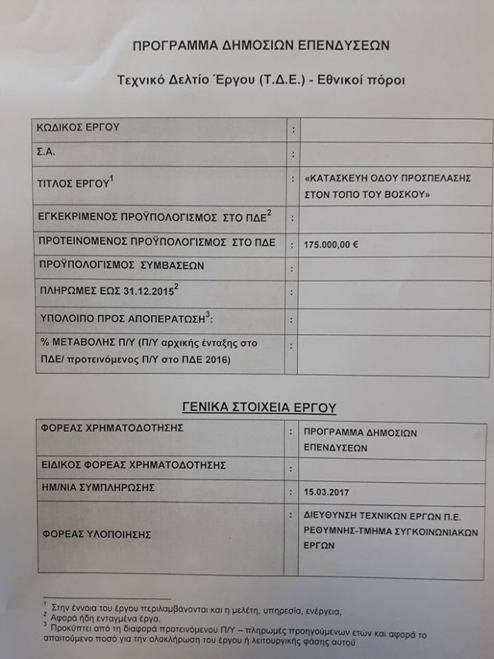 Ο Δημοτικός σύμβουλος και π.Αντιδήμαρχος Ανωγείων Βασίλης Σμπώκος τονίζει στην “Α” τα εξής μετά την παραλαβή των τεχνικών δελτίων από την Περιφέρεια Κρήτης: