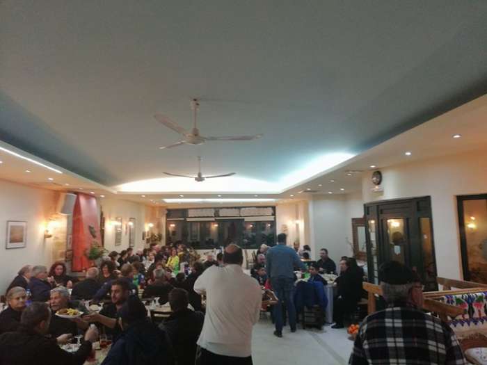Στη συνέχεια η οικογένεια Νταγιαντά παρέθεσε πλούσιο τραπέζι με αυθεντικά παραδοσιακά Ανωγειανά εδέσματα στον κόσμο και στους προσκεκλημένους της, στην παραδοσιακή ταβέρνα “Αροδαμός”.