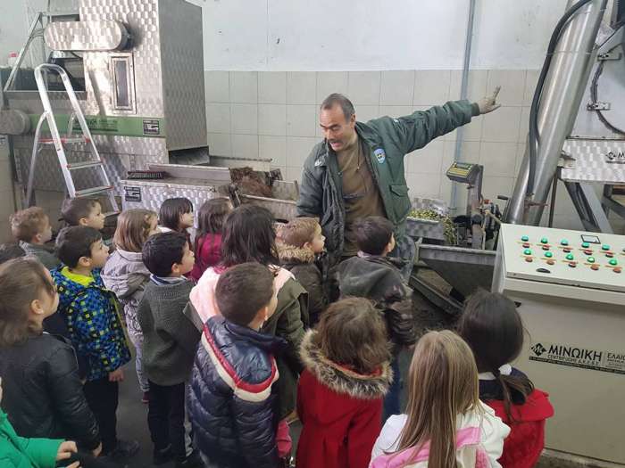 Με θέρμη τους υποδέχθηκε ο πρόεδρος του Συνεταιρισμού π.Ανδρέας Κεφαλογιάννης, που έδωσε τα συγχαρητήρια του στις εκπαιδευτικούς που αναλαμβάνουν τέτοιες πρωτοβουλίες, ενώ άνθρωποι του Συνεταιρισμού όπως ο Βασίλης Δραμουντάνης και ο Νίκος Δακανάλης ανέλαβαν τον ρόλο της ξενάγησης και της κουβέντας με τους μικρούς για την παραγωγή του λαδιού και της σημασίας του για κάθε σπίτι!