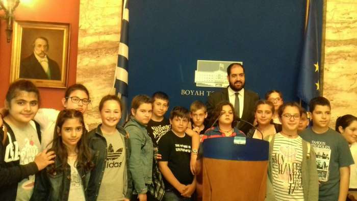 Μια σημαντική στιγμή στην διάρκεια της Εκπαιδευτικής εκδρομής στην Αθήνα, της Έκτης τάξης του Δημοτικού Σχολείου Ανωγείων, υπήρξε η επίσκεψη στο Ελληνικό Κοινοβούλιο και η ξενάγηση εκεί των μαθητών αλλά και των συνοδών τους εκπαιδευτικών και γονέων. Οι Ανωγειανοί είχαν εκεί έναν δικό τους άνθρωπο να τους περιμένει καθώς ο Βουλευτής Ρεθύμνου της Ν.Δ Γιάννης Κεφαλογιάννης, γνωρίζοντας ότι τον χώρο θα επισκεφθεί το σχολείο της ιδιαίτερης πατρίδας του, βρέθηκε εκεί και τους υποδέχθηκε θερμά! Μάλιστα ο κ. Κεφαλογιάννης έπαιξε τον ρόλο του ξεναγού στην Ελληνική Βουλή, καθώς μίλησε στα παιδιά για την ιστορία του Ελληνικού Κοινοβουλίου και της δημοκρατίας ενώ τους ξεναγούσε σε όλους τους χώρους του επιβλητικού κτιρίου στο Σύνταγμα!