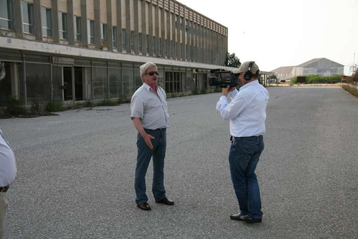 Από το προσωπικό αρχείο του δημοσιογράφου Γιάννη Φασουλά: Ο Βασίλης Φθενός μπροστά από το κεντρικό κτίριο του αεροδρομίου της Λευκωσίας. (Από τα γυρίσματα για το ντοκιμαντέρ ΗΡΩΕΣ ΧΩΡΙΣ ΠΑΡΑΣΗΜΑ)