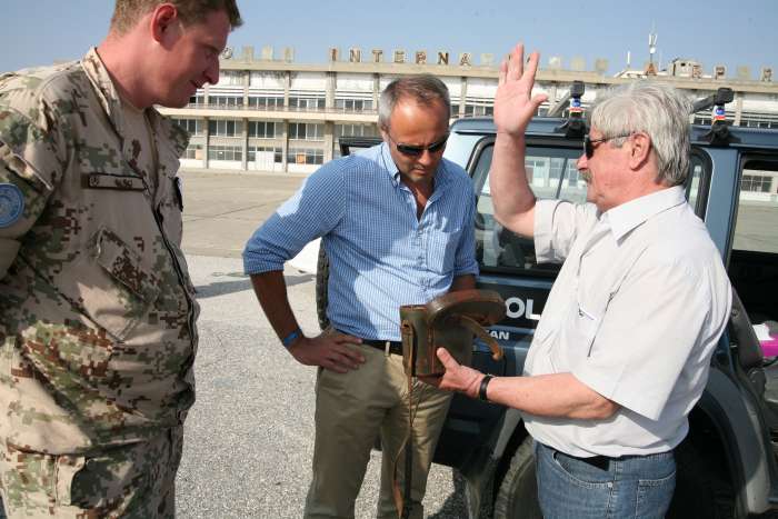 Από το προσωπικό αρχείο του δημοσιογράφου Γιάννη Φασουλά: Ο Βασίλης Φθενός στο αεροδρόμιο της Λευκωσίας , το 2010 εξηγεί στους άνδρες του ΟΗΕ πως έγινε η Μάχη του Αεροδρομίου με τους Τούρκους. (Από τα γυρίσματα για το ντοκιμαντέρ ΗΡΩΕΣ ΧΩΡΙΣ ΠΑΡΑΣΗΜΑ)