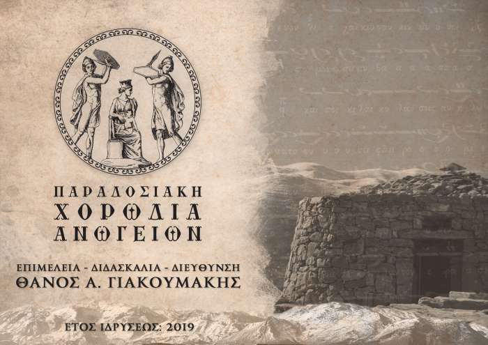 Ανακοινώνεται η ίδρυση και λειτουργία της «Παραδοσιακής Χορωδίας Ανωγείων».Η ιδέα της ίδρυσής της γεννήθηκε από τους μαθητές της Σχολής Βυζαντινής Μουσικής, η οποία λειτουργεί στα Ανώγεια από τον Οκτώβριο του 2018 με τις ευλογίες του Σεβασμιωτάτου Μητροπολίτου μας κ.κ Ευγενίου και την χρηματοδότηση του επιφανούς ανωγειανού επιχειρηματία κ. Μιλτιάδη Σαλούστρου. Καθηγητής Βυζαντινής Μουσικής και Χοράρχης της Παραδοσιακής Χορωδίας Ανωγείων διατελεί ο Θάνος Α. Γιακουμάκης.