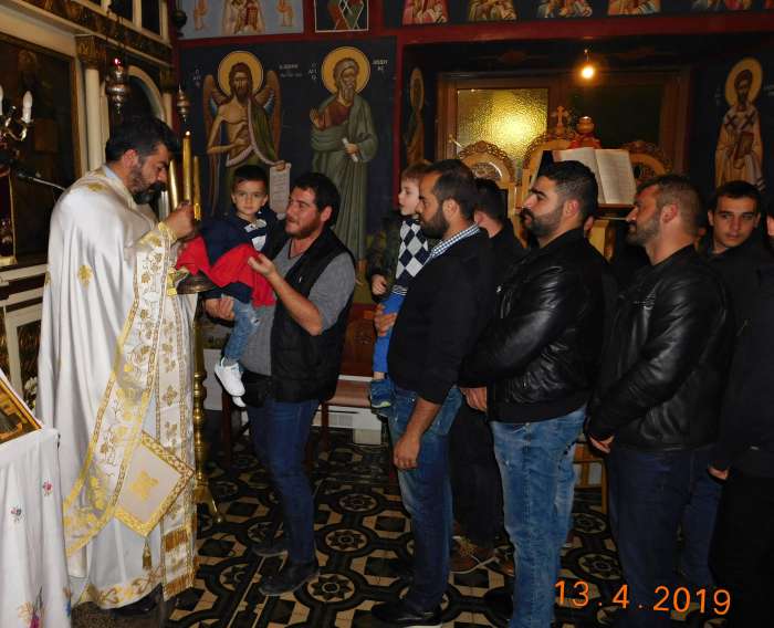 Η εκκλησία του Αγίου Γεωργίου στο Μεϊντάνι, ήταν κατάμεστη από άνδρες όλων των ηλικιών που παρακολούθησαν τη Θεία Λειτουργία, δέχτηκαν την Θεία Μετάληψη και άκουσαν στο τέλος το κήρυγμα του πάτερ Ανδρέα λίγο πριν την Μεγάλη Εβδομάδα και την μεγάλη γιορτή της Χριστιανοσύνης. Στον Ιερό Ναό βρέθηκαν και όλα τα παιδιά που στελεχώνουν το πυροσβεστικό κλιμάκιο, με τους πυροσβέστες μετά την τελετή των εγκαινίων να παρακολουθούν τη λειτουργία για άνδρες και να κοινωνούν για να πάρουν δύναμη στο ξεκίνημα τους στα Ανώγεια. Στο κήρυγμα του ο π.Ανδρέας μίλησε για την αγάπη και το μάθημα που πρέπει όλοι να πάρουμε από τον Χριστό.
