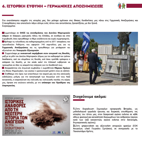 Ο έκτος άξονας του προγράμματος της δημοτικής κίνησης του Εμμανουήλ Καλλέργη “Τα Ανώγεια Μπροστά” αφορούν την ιστορική ευθύνη και τις Γερμανικές αποζημιώσεις. Αναλυτικά: