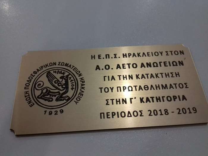 Το αποκορύφωμα μιας σπουδαίας και μεταβατικής χρονιάς, αλλά και το επιστέγασμα των κόπων διοίκησης, τεχνικού τιμ και ποδοσφαιριστών, θα γίνει την Κυριακή στις 7 μ.μ στην πλατεία Αρμί, με την απονομή από την ΕΠΣΗ του πρωταθλήματος στον Αετό Ανωγείων! Την κούπα θα απονείμει ο πρόεδρος της επιτροπής του πρωταθλήματος της ΕΠΣΗ Θεόφιλος Ασλάνης, ενώ στην εκδήλωση που θα παρουσιάσει η Αγγέλα Σκουλά θα παιχτεί και ένα δεκάλεπτο βίντεο με τις καλύτερες στιγμές φέτος της ομάδας από την κάμερα του Νίκου Σωμαράκη! Χαιρετισμό στην εκδήλωση θα κάνει ο Δήμαρχος Ανωγείων Εμμανουήλ Καλλέργης και ο πρόεδρος του Αετού Ανωγείων Στέλιος Ξυλούρης.